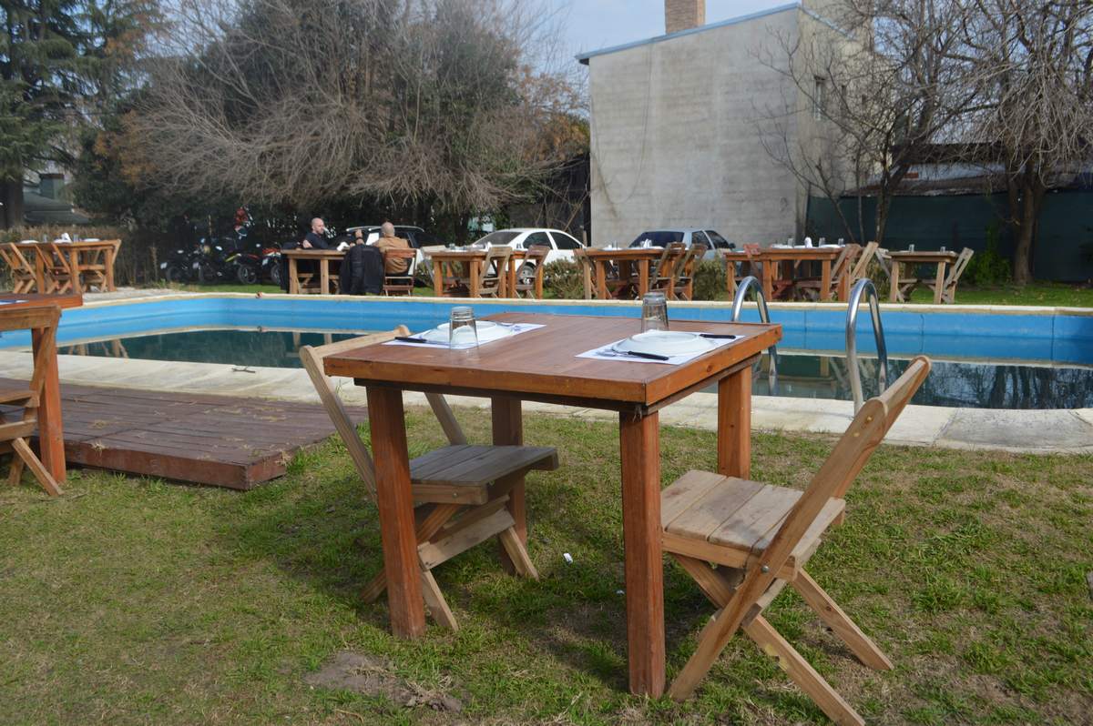 Mesas al aire libre. Piscina.