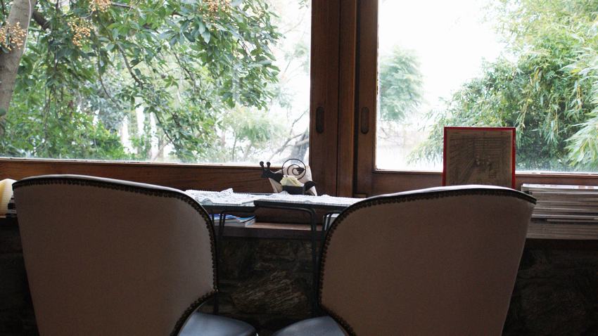 Una gran cantidad de libros y objetos de arte decoran el salon.